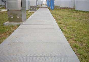 玻璃鋼蓋板是由玻璃鋼格柵和一層玻璃鋼花紋蓋板合成的,蓋板加花紋的防滑性能更強,應用最多的是在污水廠、發電站,作為電纜蓋板、走道比較多,如下圖。